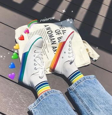 Übergroße Oberteile, Miniröcke, Jelly-Schuhe, Streifen, Neon-Kleidung