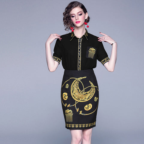 Crescent Moon Bedrucktes Kurzarmhemd und -rock