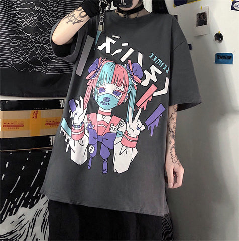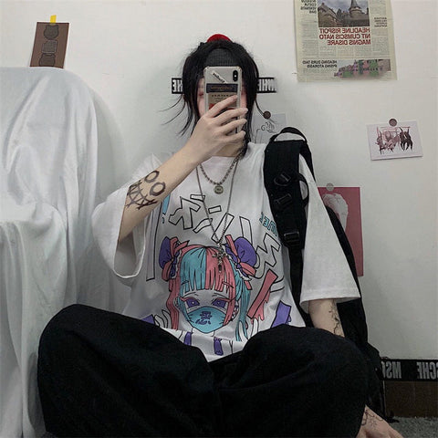 würde sich hervorragend für Gothic-, E-Girl- oder ästhetische Mode eignen. Es zeigt ein süßes kleines Mädchen mit einer bunten Maske, die überall auffällt. Ein hochwertiger Druck, der mit der Zeit nicht verblasst und aus 100 % Baumwolle gefertigt ist, macht es weich und atmungsaktiv.