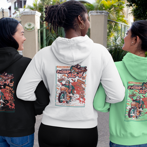 Wenn Sie anders sind, warum sollte Ihre Kleidung einheitlich sein? mit diesem T-Shirt hat es ein Ende! Ihre Kleidung wird so anders sein wie Sie! Ramen Rider Bedruckter Urbaner Hoodie im japanischen Design ist ein Hoodie mit Aufdruck auf der Vorder- und Rückseite im japanischen Design eines außerirdischen Essenslieferanten, der wie unser Hoodie auf Hochtouren geht ist der beste Streetstyle, für dich gemacht, dass du anders und einzigartig bist !