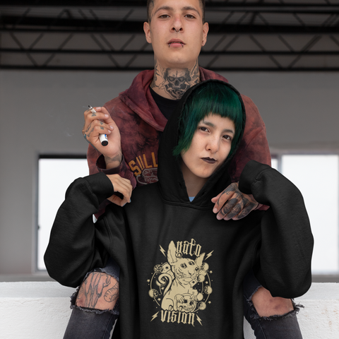 Die Magie der Katzen ist überall und jetzt können Sie sie mitnehmen, mit unserem wunderschönen Shirt mit einzigartigem Design der Katze mit magischer Sicht mit ihrer Heizung und den Mondphasen. Wenn Sie anders sind, warum sollte Ihre Kleidung einheitlich sein? Unser einzigartiger und zu 100 % origineller Hoodie, den sonst niemand haben wird.