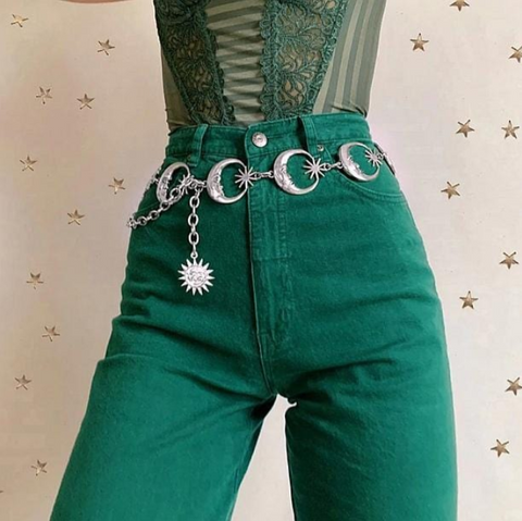 Vintage Sun And Moon Metallketten-Hüftgürtel