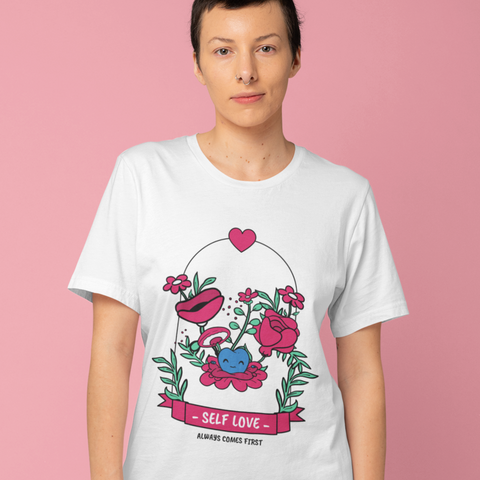Selbstliebe muss immer über allem stehen! Aus diesem Grund bietet Ihnen unser Geschäft dieses Mal dieses bequeme und originelle T-Shirt, SELF LOVE Always come first T-Shirt. das einzigartige Design unseres Shops, perfekt für jeden ästhetischen Modeliebhaber, der seine Gefühle zeigt! Jetzt einkaufen!