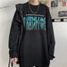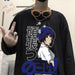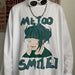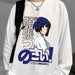 This oversized sweatshirt features a striking anime and happy face print, making it a distinctive addition to your casual wardrobe. It's designed for comfort with a relaxed fit and long sleeves, suitable for cooler weather or layering. The bold prints are intended to stand out, offering a statement piece for various styles.
