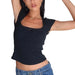 This charming blouse offers a unique blend of classic and playful elements. It features a sophisticated square neckline, delicate lace patchwork detailing, and a charming bow accent. Designed for comfort and style, this top is a versatile addition to any wardrobe, perfect for elevating a casual look or complementing a more dressed-up ensemble.
