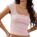 Bow Lace Patchwork Square Neck Short Sleeve Blouse