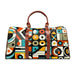 These area travel bags are designed to exude vintage charm, drawing inspiration from mid-century aesthetics. They feature bold geometric shapes and vibrant colors, making them a distinctive choice for your travels. The incredible artwork boasts circles, squares, and triangles, creatively arranged against a black base. The color palette includes vivid shades of orange, green, blue, and yellow, all sharply contrasted with white for an eye-catching effect. This artistic flair ensures your bag will stand out.