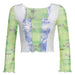 Floral Print Mesh Transparent Crop Top with Square Collar