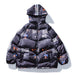 This Graffiti Parka Padded Coat is designed to keep you warm and stylish. Its unique graffiti design adds a trendy and edgy touch, making it a standout piece for any winter outfit.