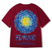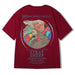 Hip Hop Short Sleeve T Shirt with Oversized Prints Burgundy