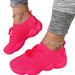 The upper part of the shoe is made from Stretch Fabric, which provides flexibility. The pattern is a solid color. The interior lining uses Mesh material, contributing to breathability. The insole is made of PU for cushioning. These shoes have a flat heel, measuring 1cm or less. They feature a Lace-Up closure for a secure fit.