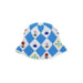 This unique bucket hat features a charming design with plaid patterns and delicately embroidered flowers. It's a stylish accessory perfect for adding a touch of personality to your outfit.