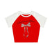 Y2k Bow Crop Top Blouse Heart Style Red White / S