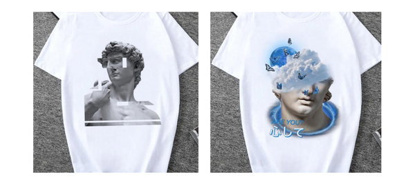 Introducción de elementos del arte clásico, estas imágenes tendrán bustos grecorromanos, columnas, diferentes formas arquitectónicas, a veces incluso símbolos del arte religioso, como siempre envueltos en ese halo malva, azul-rosa, característico del estilo. obras de arte (especialmente escultura helenística, pinturas renacentistas e impresionistas)
