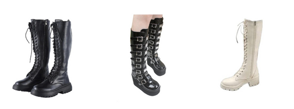 Military Chic: La característica de cordones que a menudo se encuentra en las botas de combate se ha adaptado a las botas hasta la rodilla de moda. Esta elegancia de inspiración militar aporta una sensación de fuerza y resistencia al usuario, haciendo una declaración audaz tanto en conjuntos informales como elevados.