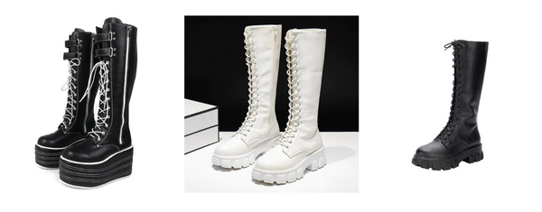 1. Palabras clave: botas hasta la rodilla, con cordones, versatilidad de moda