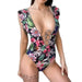 Traje de baño de una pieza a todo color con estampado floral halter