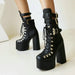 Botas Tobilleras De Tacón Alto Con Hebilla De Murciélago Y Cordones