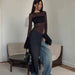 Top de manga larga de malla con cuello asimétrico irregular