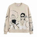 Girls Cartoon Crewneck Sweatshirt with Colorful Print Beige