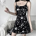 Vístase para impresionar con este estilo de minivestido que presenta un estampado novedoso de luna y estrella en la tela de color negro. Este vestido liviano combina muy bien con un cinturón tipo cuero de color oscuro y crea el ajuste perfecto para cualquier tipo de cuerpo.