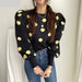 Cashmere Cotton Polka Dot Puff Sleeve Sweater Black
