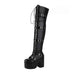 Botas altas hasta el muslo con cordones y tacón cuadrado por encima de la rodilla de PU