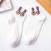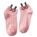 Calcetines tobilleros de algodón suave con orejas de conejo y grandes ojos en 3D