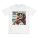 Dale un toque divertido a tu armario con nuestra camiseta "¡Día libre del Conde!". Una hilarante ilustración de un vampiro relajado, bebiendo un batido rojo sangre bajo el sol abrasador y sonriendo con los colmillos al descubierto, que te sacará una sonrisa. Presume de tu estilo original con esta cómoda y divertida prenda. ¡No es solo una camiseta, es un tema de conversación!