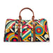 ¡Viaja al pasado con nuestras bolsas de viaje con estampado retro! Luce vibrantes formas geométricas en tonos amarillos, naranjas, rojos, verdes, azules y rosas. Disfruta de una rítmica combinación de rombos, óvalos y zigzags con un toque de elementos inspirados en los años 60 como flores, estrellas y lunares. Elegante y divertida a la vez, este diseño captura a la perfección el espíritu de la época. ¡Destaca con este estampado nostálgico y cautivador!