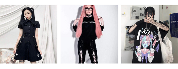 Un estilo marcado por: Pantalones largos, Crop tops oscuros, Jeans rotos, Botas, Leggings, Shorts, Sudaderas