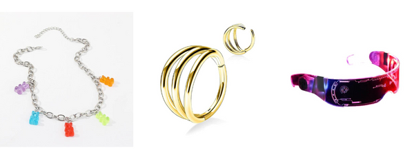También son comunes los anteojos de colores neón en una variedad de formas. Muchos jóvenes japoneses que siguen la estética Harajuku también disfrutan de los piercings.