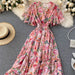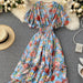 Vestido bohemio de cintura alta con cuello en V y estampado floral