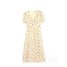 Floral Chiffon Midi Dress with Puff Sleeves Beige / S