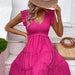 Vestido acampanado con escote en V y sin mangas con pliegues medios