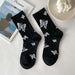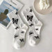 These black and white butterfly cotton socks are a great everyday choice. They come in one size, designed to fit most feet comfortably. The socks feature a middle tube height, meaning they rise to about mid-calf. Made from soft and breathable cotton, these butterfly cotton socks offer a comfortable feel for all-day wear. The classic white butterfly design adds a subtle touch of style, making them versatile for various outfits.