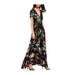 This bohemian flower print V-neck dress offers a relaxed, flowing style perfect for a variety of occasions. The design features an A-line silhouette that drapes gracefully to an ankle length, providing comfort and ease of movement. The neckline is detailed with a bow, adding a subtle decorative touch to the overall bohemian aesthetic. Crafted from a blend of cotton and chiffon, the dress combines the natural comfort of cotton with the light, airy feel of chiffon. This blend contributes to a soft texture and a comfortable drape, making it suitable for warmer weather or layered styling.