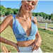 Embrace the essence of Wabi-Sabi with the Denim Deep V-Neck Tie Back Crop Top Blue. This piece blends traditional Japanese aesthetics with modern minimalism. Crafted for comfort and mindfulness, perfect for your daily ritual.