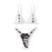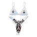 This "Demons and Skulls Bikini" is a two-piece swimsuit designed with a unique aesthetic. It's made from polyester, offering a comfortable and quick-drying option for swimwear. The design features a distinctive pattern of demons and skulls, making it a bold choice for those who enjoy alternative or edgy styles. This bikini is ideal for lounging by the pool, beach trips, or enjoying warm weather activities.