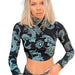 Dragon Printed Long Sleeve Backless Crop Top Blue / S