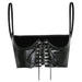 This Gothic Dark PU Leather Corset Crop Top offers a distinctive style. It's a sleeveless design crafted from PU leather, providing a sleek and edgy look. The top features adjustable spaghetti straps for a customizable fit. It does not include padding and offers push-up support.